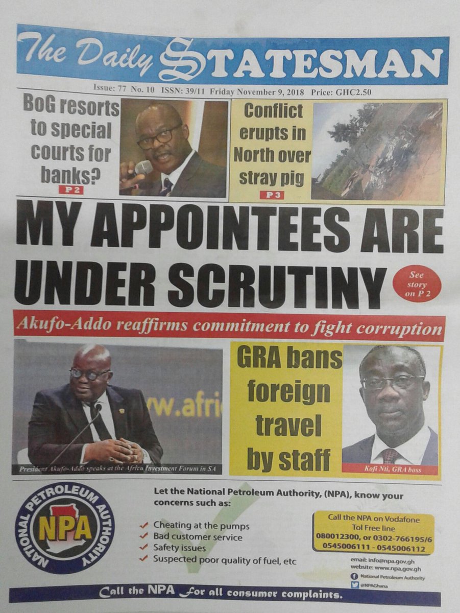 edition news Home » myJoyOnline » Fri 09th Nov, 2018 » Today\'s front pages Today's front pages Today's front pages myJoyOnline Fri 09th Nov, 2018 07:11 Read Full Story Advertise Here contact ads[@]ghheadlines.com Related Items edition news edition news Fri 09th Nov, 2018 07:11 myJoyOnline Related Items edition news